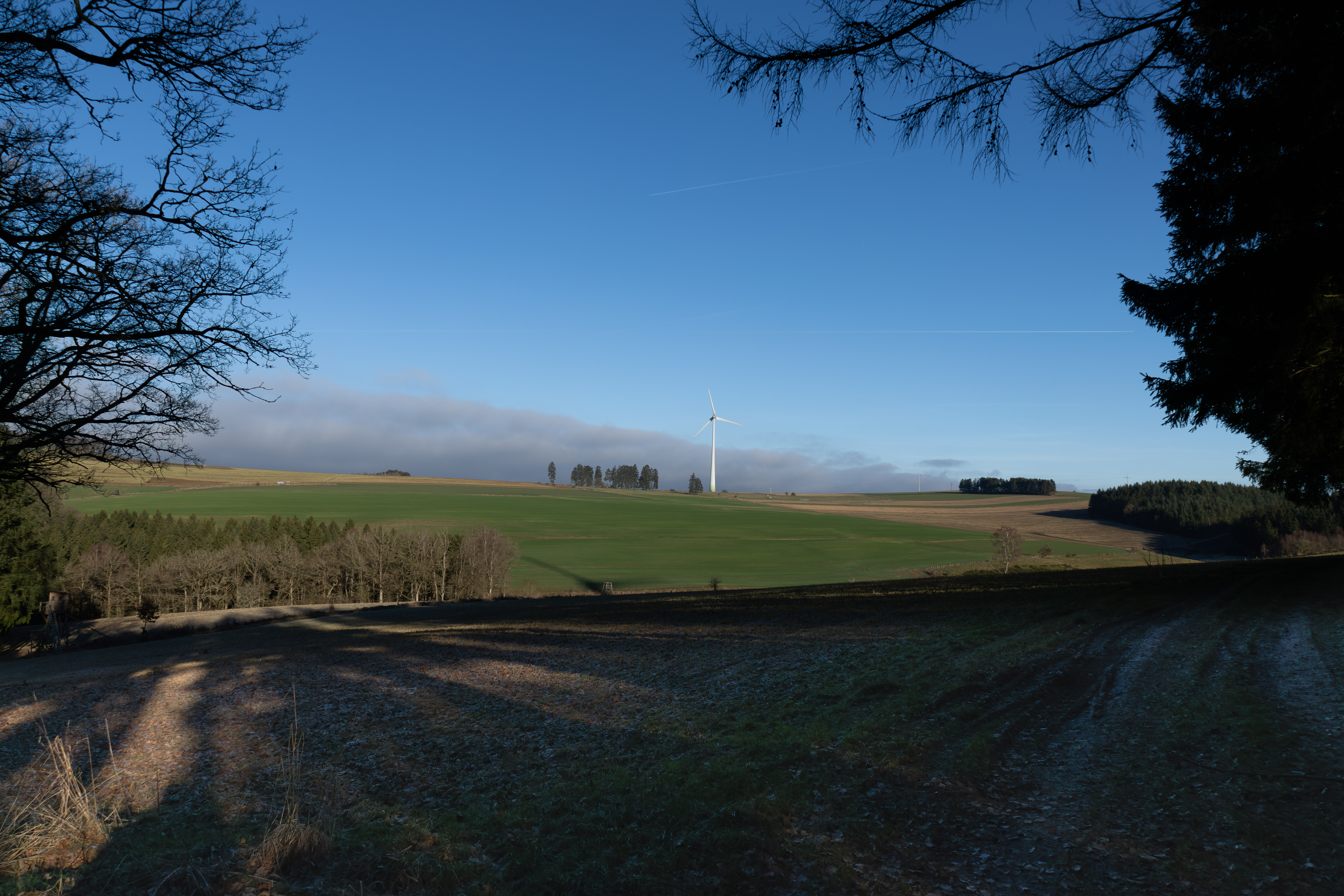 The route doesn’t just stick to open fields. After crossing the town and following the Clerve river valley, the trail climbs into the wooded heights of the Irbich brook valley, making its way under a soft canopy of trees before descending again toward Drauffelt.